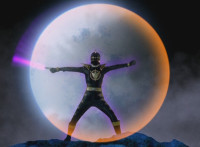 Black motions his Brachio Staff in a circle in front of the moon. |