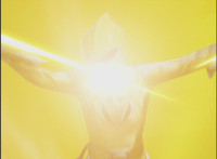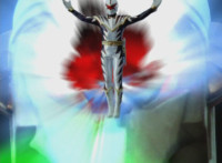 White finishes energy slashing his White Drago Saber in a Z shape. |