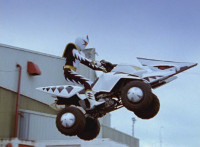Black leaps his Thunder ATV away from an explosion. |