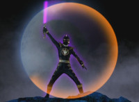 Black motions his Brachio Staff in a circle in front of the moon. |