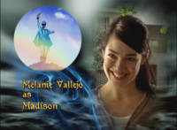 On the left, Blue poses in front of a blue waterfall / on the right, Madison smiles. |