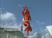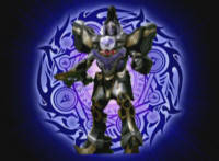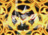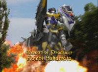 Koragg merges with his giant armor and stands completed in Centaurus Wolf Megazord. |