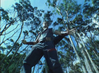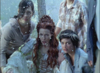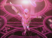 On the left, Udonna demorphs from White Mystic Ranger / on the right, Clare looks perplexed. |