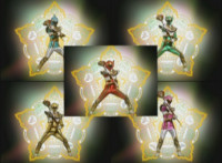 All five Mystic Force Rangers begin their morph. |