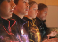 ![]() ![]() The four Overdrivers roll their Overdrive Trackers down their forearms while doing their first morph. |