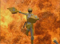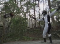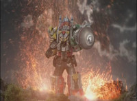 ![]() ![]() ![]() Black materializes his Drive Slammer, points it at some Chillers, then flings it at them. |