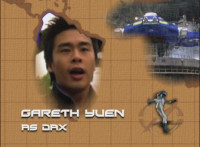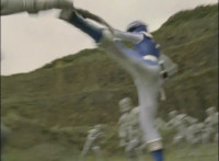 ![]() ![]() South America inset: Dax gawks durpily in a close-up, followed by him super leaping into the air. Bottom right, original footage of Blue posing. Upper right, Gyro Driver lifts off from the hangar. |