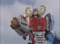 ![]() DriveMax Megazord performs its finisher with the Driver Saber. |