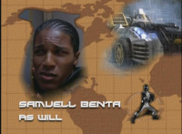 ![]() ![]() North America inset: Will appears befuddled next to a safe, followed by a zoom in on his eye as he activates his telescopular vision. Bottom right, original footage of Black posing. Upper right, Speed Driver rolls forth from the hangar. |