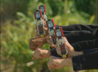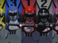 ![]() ![]() In their cockpits, the five Rangers appear side by side while activating their Overdrive Trackers. |