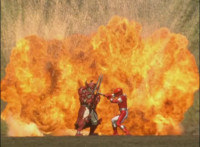 ![]() Red clashes blades with Moltor, causing a ripple and explosion. |