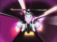 ![]() Black rides his HoverTek Cycle down an energy tunnel. |
