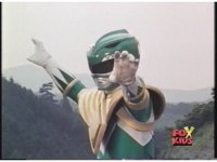 Close on Green Ranger, crossing from a pose to our right, to a final one in center. |