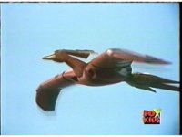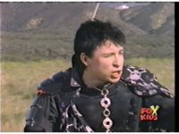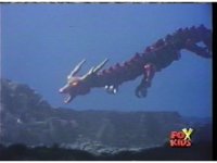 Upward angle, close on Green Ranger, as he whips Dragon Dagger up, then to mouth and begins to play it like a flute. |
