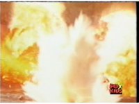 Explosive fireball erupts, with sparks. |