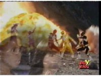 Explosion rips out in front of already exploded five Rangers. |