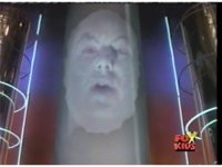 Close shot on Zordon, as he moves his mouth while talking. |