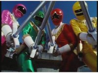 Pink, Green, Red, & Yellow Zeo Rangers hold their Zeo Swords nearly together and begin pushing forth into the screen. |