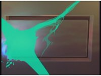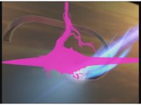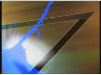 Beam fires across against block of energy, carving an upside down triangle symbol. |