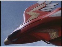 Downward close shot on Zeozord Five, flying to our left as it shifts wings in its sides. |