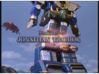 Zoom out from the five Zeo Rangers as they motion arms about and reach for the sky with one arm each, the dark backdrop flashing into their colored Zord symbols. |