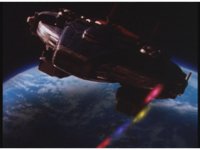 A glowy, sparkly thing flies over the Earth at the screen, explosively forming the "POWER RANGERS IN" logo as the "SPACE" docks with it... in space! |