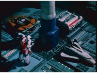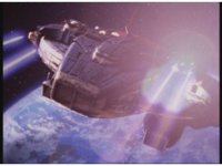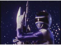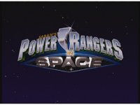 A glowy, sparkly thing flies over the Earth at the screen, explosively forming the "POWER RANGERS IN" logo as the "SPACE" docks with it... in space! |