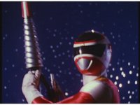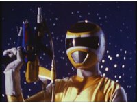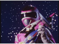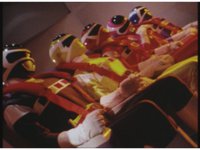 The five Rangers struggle against the g-forces while strapped into the Shuttle take-off seats. |