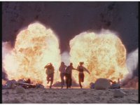 The NASADA Shuttle lifts-off just ahead of a massive explosion below it. |