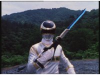Silver Ranger raises his Super Silverizer in saber mode. |