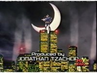 Time Shadow Megazord goes from being suspended upside down, to on top of the World Trade Center via a hologram. |