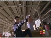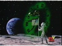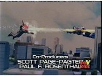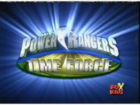 The camera smashes through a clockface, forming into the words "POWER RANGERS", then soon below it the words "TIME FORCE" all shimmering. |