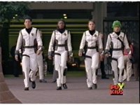 The Time Force Rangers stand around, the camera finally moving around them. |