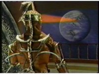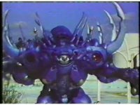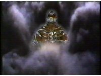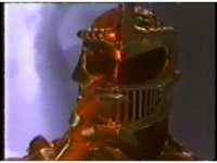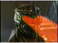 Close on Lord Zedd's head as he looks to our right and sends off his red vision beam from his visor. |