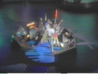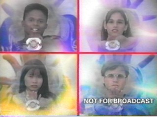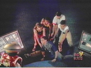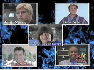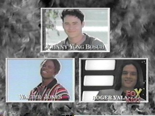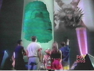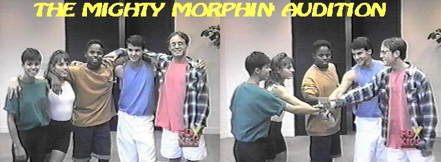ASJ informs us, "Okay! Now it's time, for what we've ALL been waiting for: the very first broadcast of the never before seen pilot episode, of the Mighty Morphin Power Rangers." (legally, that is. Bootleg copies of it have been around for eons!) WEJ remarks, "Now, you'll probably notice a few differences from the series. The most obvious being the character Trini. She's played by Audri DuBois, instead of Thuy Trang, who actually joined the cast as we finished the pilot. Oh, now, also check out Alpha (causing ASJ to burst out laughing), because Alpha has a different look, as does Zordon, who's actually called 'Zoltar' in this version." ASJ invites us to, "See if you spot some of the other differences as you watch this 'very special' pilot episode, of the Mighty Morphin Power Rangers. Have fun!" He smiles and looks to WEJ. The two of them start giggling, as the camera fades to the multi-screen behind them.