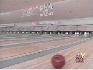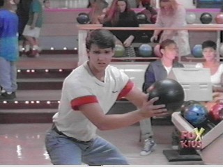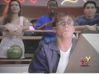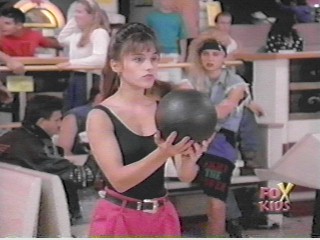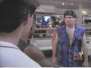 At an unnamed, nondescript Bowling Alley somewhere in Angel Grove, we find quite a busy scene. Balls are striking at pins like crazy, proving this is one happening place for the teenagers of the city. Zach, a young black teenager wearing black pants and an ugly sleeveless vest, slides in, his status being that of apparently one of the most popular youths in the city. He sees a girl he recognizes and grabs her hand, giving her a kiss on the cheek, causing her to giggle and say, "Heheh! Hey, Zach!" He continues smiling and greeting a group of fellow teens, slapping on fellow brotha five, and proclaiming aloud, "Never fear! The Zach Man is HERE!" Zach walks along the front counter, shouting "Wassup?!" & "What's happenin'?!" repeatedly to each and every teen sitting there, also slapping each one five. Have I mentioned how popular this place is? Did the Pilot Universe spawn from the movie "Grease 2"?! Jason, a dark haired and muscular teen, wearing a short-sleeved white shirt with a red one underneath, is getting ready to bowl a ball, but takes the time to show off his martial arts skills by whipping it around in his hand while getting in position. On the next lane, a petite brunette teen, Kimberly, very gracefully gets ready to bowl, while wearing a black tanktop and pink shorts. Zach, who's wearing a black shirt with a multicolored vest, continues on his trip, giving props to all his unnamed homies of various races and creeds, including a blonde girl named Katie. At the double lanes where Jason & Kimberly are bowling, we find Billy & Trini sitting at the scoreboard. Billy, a brown haired teen with Buddy Holly-type glasses and blue overshirt, explains to Trini, a Hispanic (or French, quite possibly an Eskimo) masculine female who wears a white top and yellow pants, about the proper way to bowl. He explains overintelligently, "And then the sphere will have an angular decay of 3.1 to the minus 10 with a drag coefficient of .9875." Trini understands completely, and translates into laymen's terms, "Oh! So, in other words, if I spin the ball and I aim for the pocket, i'm gonna get a strike?" Billy agrees, "Affirmative!" Zach then comes up behind them and pats them on the back, saying, "Yo, Trini! Billy! Wassup?!" The three are apparently intimate pals, replying happily to him, "Hey, Zach!" Jason is still achieving meditational status with his ball, about to reach a moment of perfect strike-bowling Zen, when Zach sneaks up behind him and shouts, "Yo Jase!" Jason is stunned, and his ball miserably rolls towards the gutter. Jason playfully beats into Zach's chest, complaining, "Very funny! I had a PERFECT game goin'!" They shrug it off with a powerful buddying handshake and hug. Kimberly calls out snobbily, "Excuse ME?! I'm trying to bowl a strike over here!" Jason blames Zach, saying, "Hey, it's HIS fault!" Zach squabbles back playfully, "Say what?! Nah, HEY!" Kimberly ignores them, and returns to her swanlike stance. She proceeds to bowl, only to have the ball slip out of her delicate fingers on the underswing. It flies back behind her, landing on a nearby table, smashing the chili-dog and sending its contents heaving into the face of a nearby leather jacket-clad dark haired punk. Kimberly whines, "Ohhhh! I BROKE my NAIL!", turning her attention only to her pretty pink fingernails.