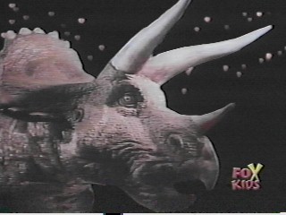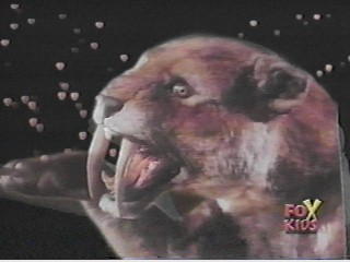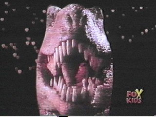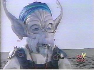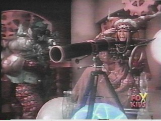 Zach scoffs again, "Oh, yeah, RIGHT!" Zoltar bemusedly looks at the teen, and remarks, "Ahhh. A nonbeliever! BEHOLD!" Instantly a viewing screen appears overhead, just to the side of Zoltar's huge noggin. Billy points out, "Look! A proton projection!" The image on the hologram-like screen shows the flying skyscraper from earlier, as it lowers back down to Earth. Also included is the crazy witch from earlier, with Zoltar narrating, "THIS is Rita Repulsa. An alien bent on controlling the universe. And she's decided to begin... on Earth." The photon screen shows various Asian scientists running around and falling over as the quake occurs. Then, we see Rita, riding on a little flying Penny Farthing bike through the air, as the winged golden-armored Griffin named Goldar swoops along behind her over the city. We also see the skyscraper, which has landed back in the city. It now has a tall, spiraling castle atop it, with the words "Bandra Palace" in neon above the front door. Jason asks, "If she's so dangerous, why don't YOU fight here?" Zoltar, in an obviously redubbed voice by someone possibly other than Fielding, explains, "Because LONG ago, she trapped me in a Time Warp." Rita glides along, and eventually fires her magic wand at a building, igniting it into flames. It explodes, along with several other buildings at once! She laughs wickedly, just before the image cuts off, shrinking like the image on an old picture tubed TV screen when turned off. Trini states enthusiastically, "I KNOW it's scary, but what does all of THIS have to do with US?!" Zoltar reveals, "You have been chosen to form an elite team to battle Rita. As teenagers, the future of the planet is YOURS. And you are now called upon to defend that future! Each of you will be given access to EXTRAORDINARY powers, drawn from the spirits of the ancient creatures YOU call... Dinosaurs!" The captive audience breaks their silence, when they all shouts in shock together, "DINO-saurs?!" Zoltar continues, by saying, "Jason, you shall have the power of the Tyrannosaurus. Bold & Mighty!" We see Jason, minding his own business, when suddenly he morphs before us, turning into the head of an actual T-Rex! Next, Zoltar addresses, "Zachary, the power of the mastodon. Clever & Brave." Zach smiles, before morphing into a woolly mammoth. Zoltar adds, "Kimberly, your power comes from he Pterodactyl. Cunning & Quick!" Kim shrugs her shoulders, and morphs her body into that of an actual still-frame of a Pterodactyl. Zoltar continues, "Billy, you draw from the Triceratops! Patient & Smart!" Billy grins, and turns his head, as he morphs into said frozen tri-horned dino. Zoltar concludes, "And Trini, your power comes from the Sabertoothed Tiger. Fierce & Agile!" Trini smiles and extends her arm out, to match the shot of the ancient Sabertooth she briefly morphs into, before reverting back.
