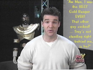| _SPECIAL HOSTED BY:_ Austin St. John & Walter Emmanuel Jones _PILOT EPISODE STARRING CAST:_ Amy Jo Johnson _AS_ Kimberly (Pink Ranger) Walter Jones _AS_ Zach (Black Ranger) [Not "Zack" as in the regular series] Austin St. John _AS_ Jason (Red Ranger) David Yost _AS_ Billy (Blue Ranger) Audri Dubois _AS_ Trini (Yellow Ranger) Paul Schrier _AS_ "Punk #4" aka "Bully #3" [Not Bulk, according to Paul himself] David Fielding _AS_ Zoltar Richard Wood _AS_ Alpha 5 (voice) Barbara Goodson _AS_ Rita Repulsa (voice) Dave Mallow [As Colin Phillips] _AS_ Baboo (voice)/ Flyguy (voice?) Michael Sorich _AS_ Squatt (voice) Robert Axelrod _AS_ Finster (voice) [?!] |