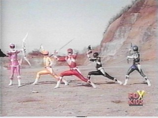 [Four squares suddenly roll over the Lightning Bolt symbol striking, showing various clips from MMPR, PRZ, PRT, PRiS, and PRLG. VERY many clips, too numerous for me to name without boring you!]