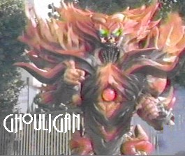 Ghouligan falls backwards, as the Power Rangers regroup and await Ghouly to get up. Our