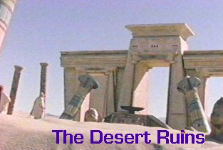 what they think to be a mirage, and rush off to investigate further. No mirage, but a rough oasis, consisting of half-buried ruins,